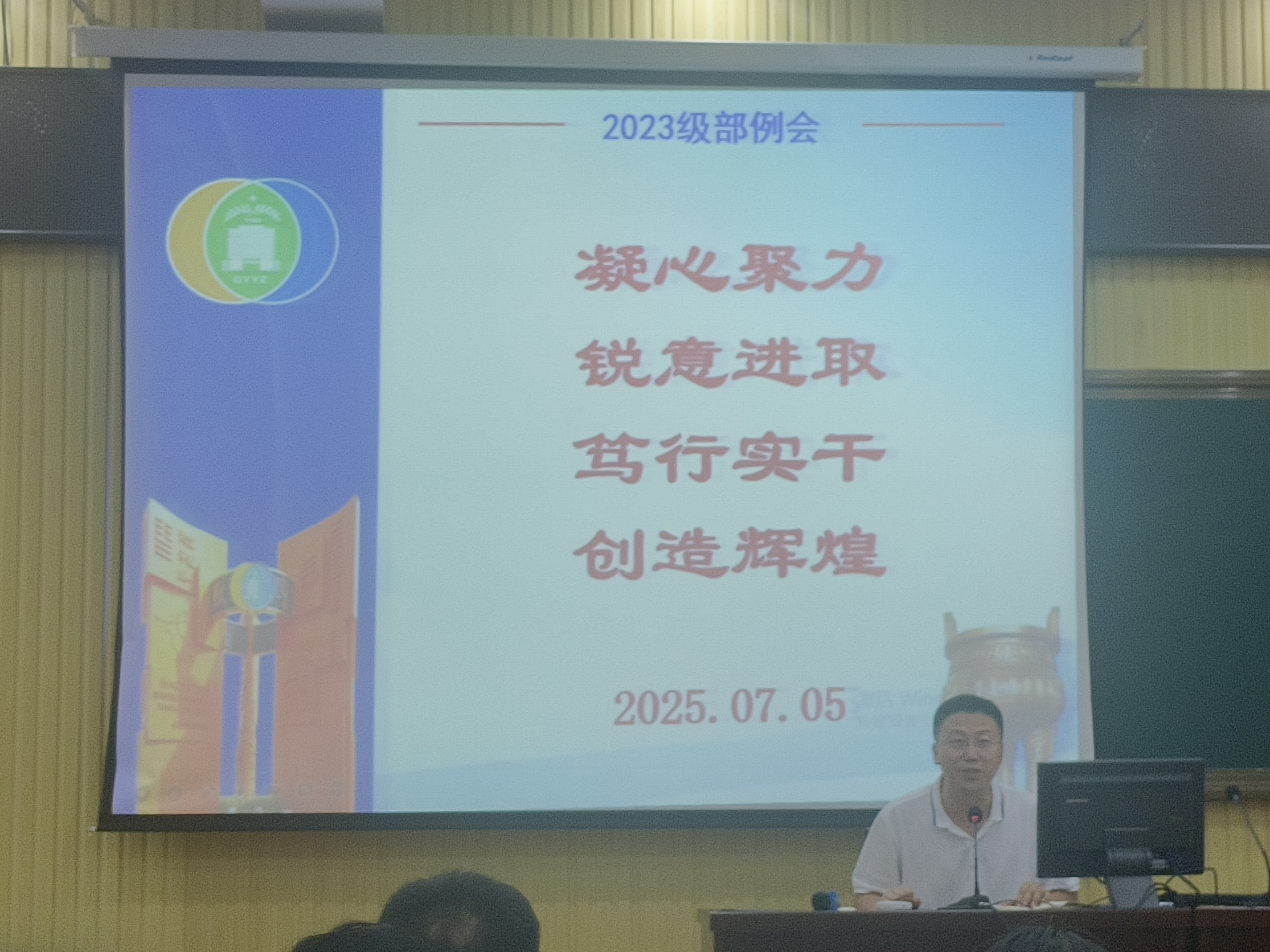 7月5日,2023级部在高三阶梯教室召开级部例会,全体高三教师参会。会议由2023级部级部主任李中刚主持;2023级部副主任王岳、刘培良进一步强调了班级管理、教学管理工作的注意事项;党委委员、副校长李衡斌参加会议,为全体高三教师鼓劲加油。