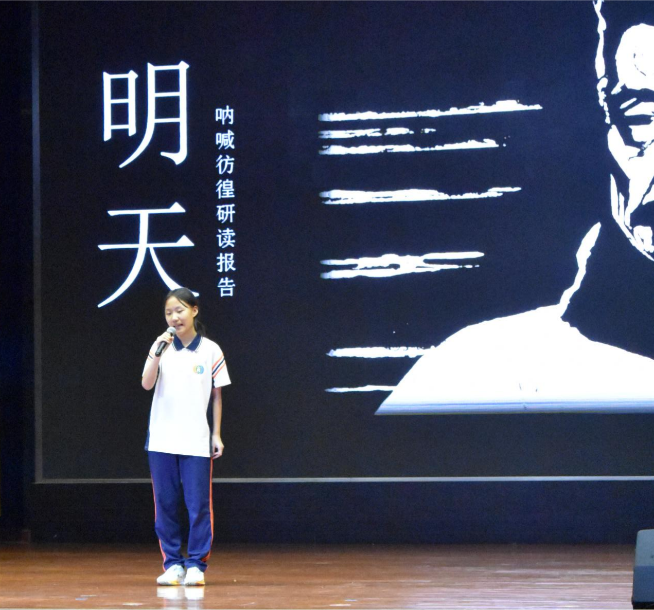 展演在《呐喊·彷徨》的戏剧演绎中拉开帷幕。李可馨团队以极具张力的表演再现鲁迅《风波》中的世态人情,七里屯的辫子风波在年轻演员的精准诠释下,折射出封建桎梏下的人性困局。随后,研读报告环节迸发思想火花:缪子璘同学以《落幕——鲁迅作品中的死亡》叩问生命价值,张雅馨通过《明天——鲁迅作品中的女性》剖析时代枷锁,杜润泽则借《沟壑之恋》解读《平凡的世界》中爱情与变革的深刻联结。当温瑞莹原创诗歌《又见晓霞》的朗诵声响起,孙少平的精神图腾穿越文字化作舞台上的星光;赵鹏哲团队创作的歌曲《笔锋里有光》更以青春旋律唱响鲁迅的锋芒,引得全场共鸣。