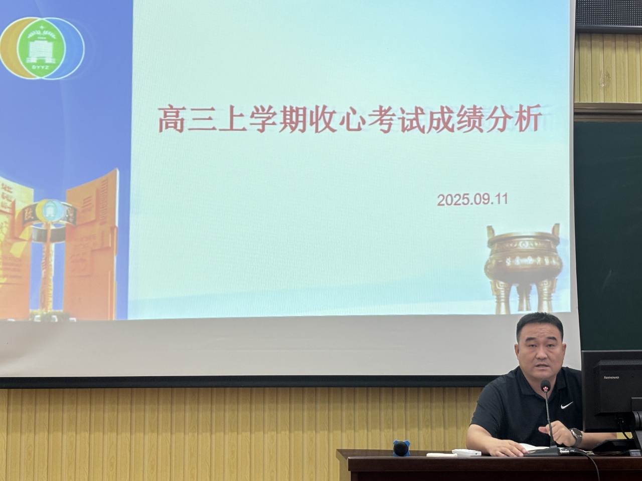 9月12日下午,市一中2023级部在阶梯教室召开高三新学期关键节点例会,聚焦常规管理细化与备考目标明确,为后续一学年的复习冲刺工作筑牢基础。会议由级部主任李中刚主持,高三全体教师参会,级部副主任刘培良围绕收心考试成绩作分析,并明确各班级阶段性目标,推动备考工作从“有序”向“高效”迈进。