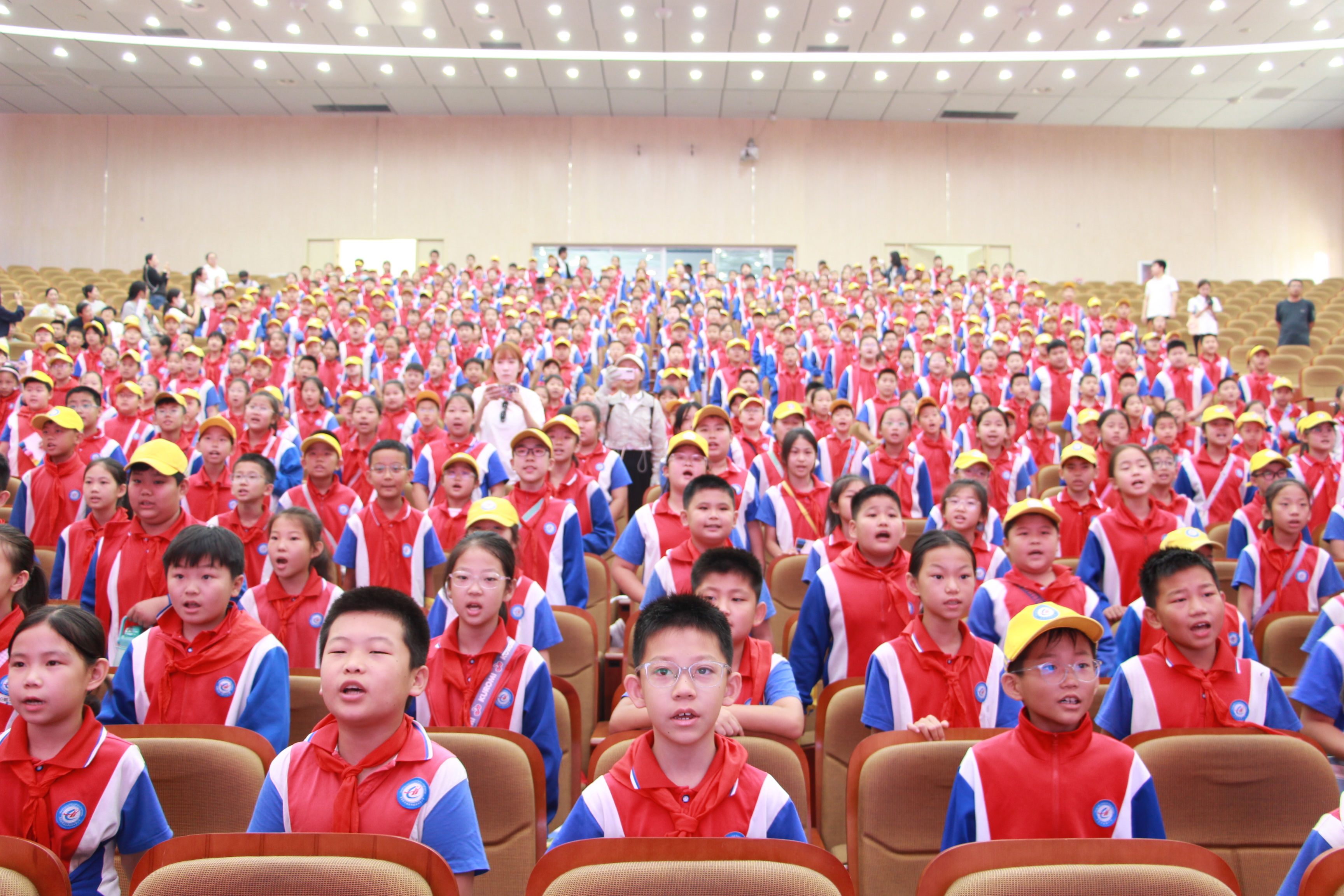 研学首站聚焦道德讲堂。赵主任先全面介绍市一中学生的学食住行四个方面,再生动解读学校近年办学成绩,详实的内容让孩子们听得兴致勃勃。随后合唱环节点燃氛围:在丽景小学出色小主持人的引导下,全体师生共同唱响丽景小学校歌;接着,两位丽景优秀毕业生加入,全场同唱市一中校歌《心向未来》,张珊珊老师全程指挥,悠扬旋律在讲堂内久久回荡,动人心弦。