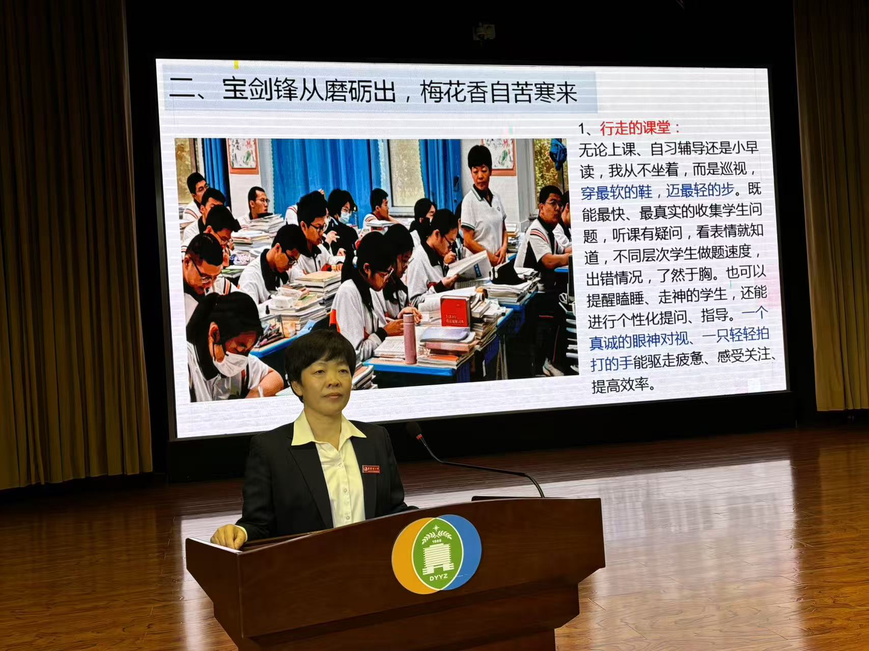 随后召开全体教职工大会。会议首先宣布了近期相关人事调动决定。接着,创新实验部的郭敏老师和刘晓行老师分别以《凝心聚力,薪火相传——谈谈青年教师的培养》《春风化雨,育英才》为题,分享了他们在团队建设与经验传承、学科教学与人才培养、教学成果与育人方法等方面的宝贵经验与感人事迹。她们真诚的话语、感人的事迹、典型的做法与无私的奉献精神,从侧面展现了我校教师深厚的专业素养与高尚的职业情操。