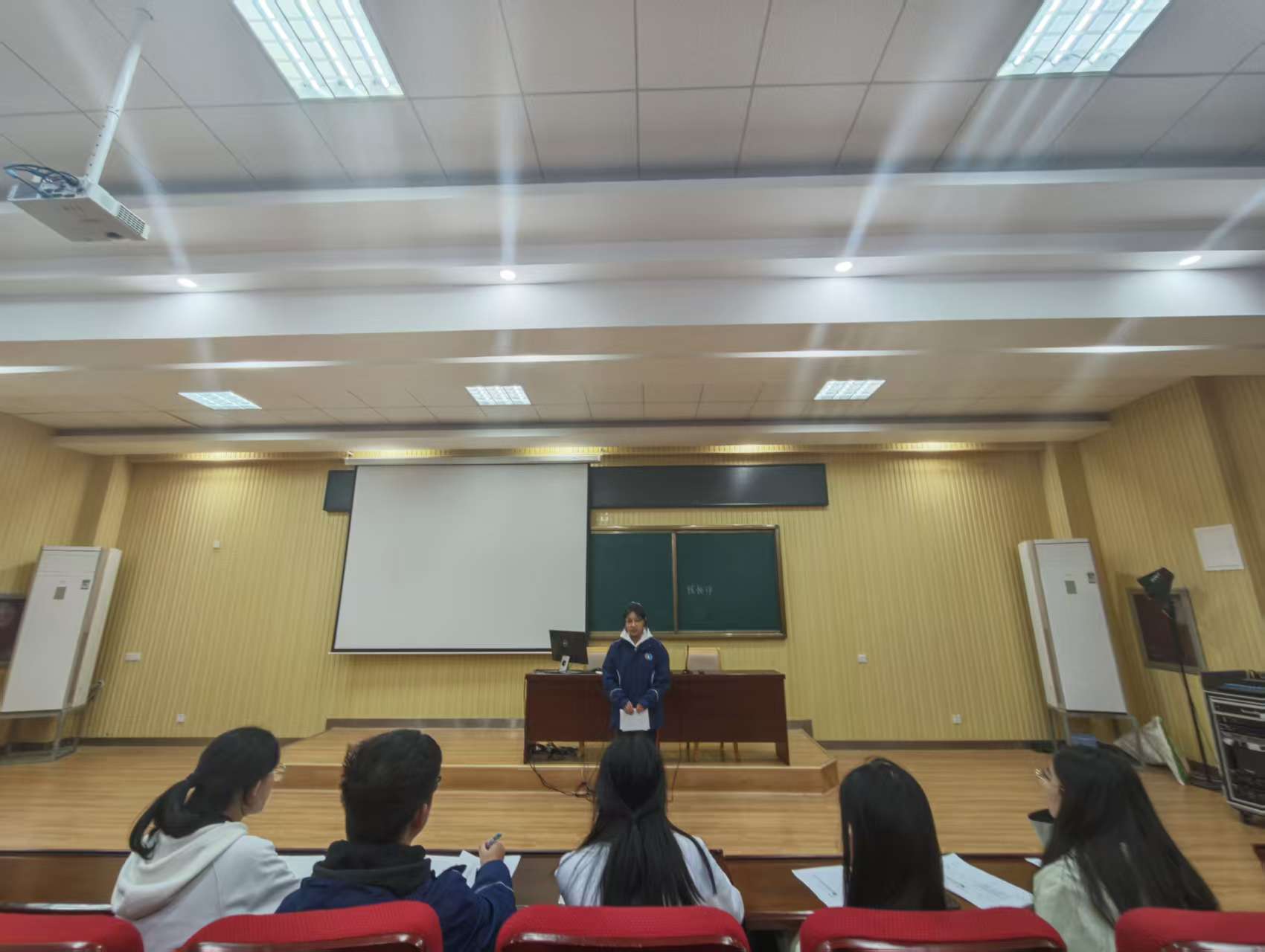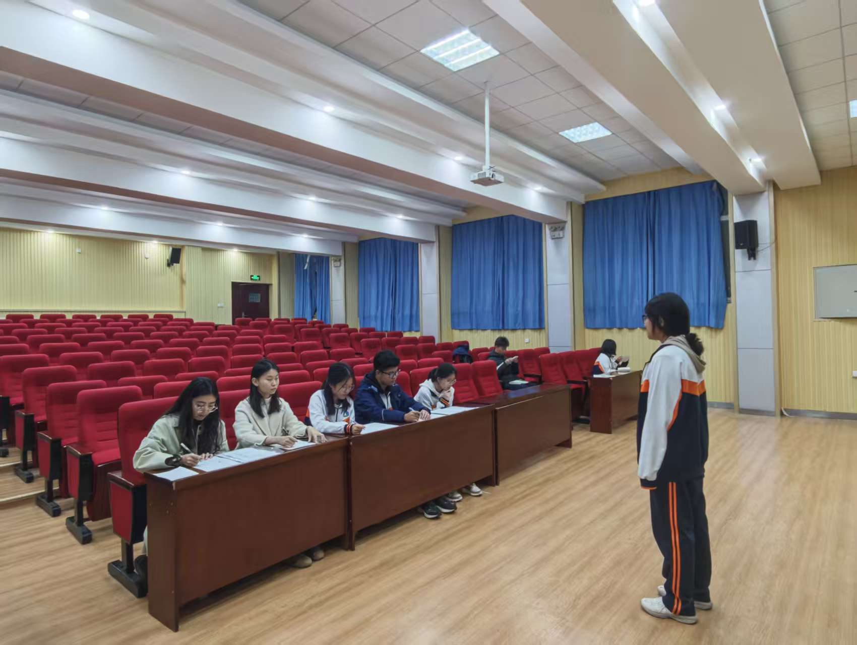 本次纳新面试旨在全面介绍社团特色文化与年度活动规划,吸引更多英语爱好者加入。活动通过精心设计的互动环节,营造出轻松愉悦的交流氛围,取得了远超预期的效果。下午5点,教师、学生评委到场,25级应聘同学在有序入座,与社团主要成员展开初步交流,现场氛围热烈。