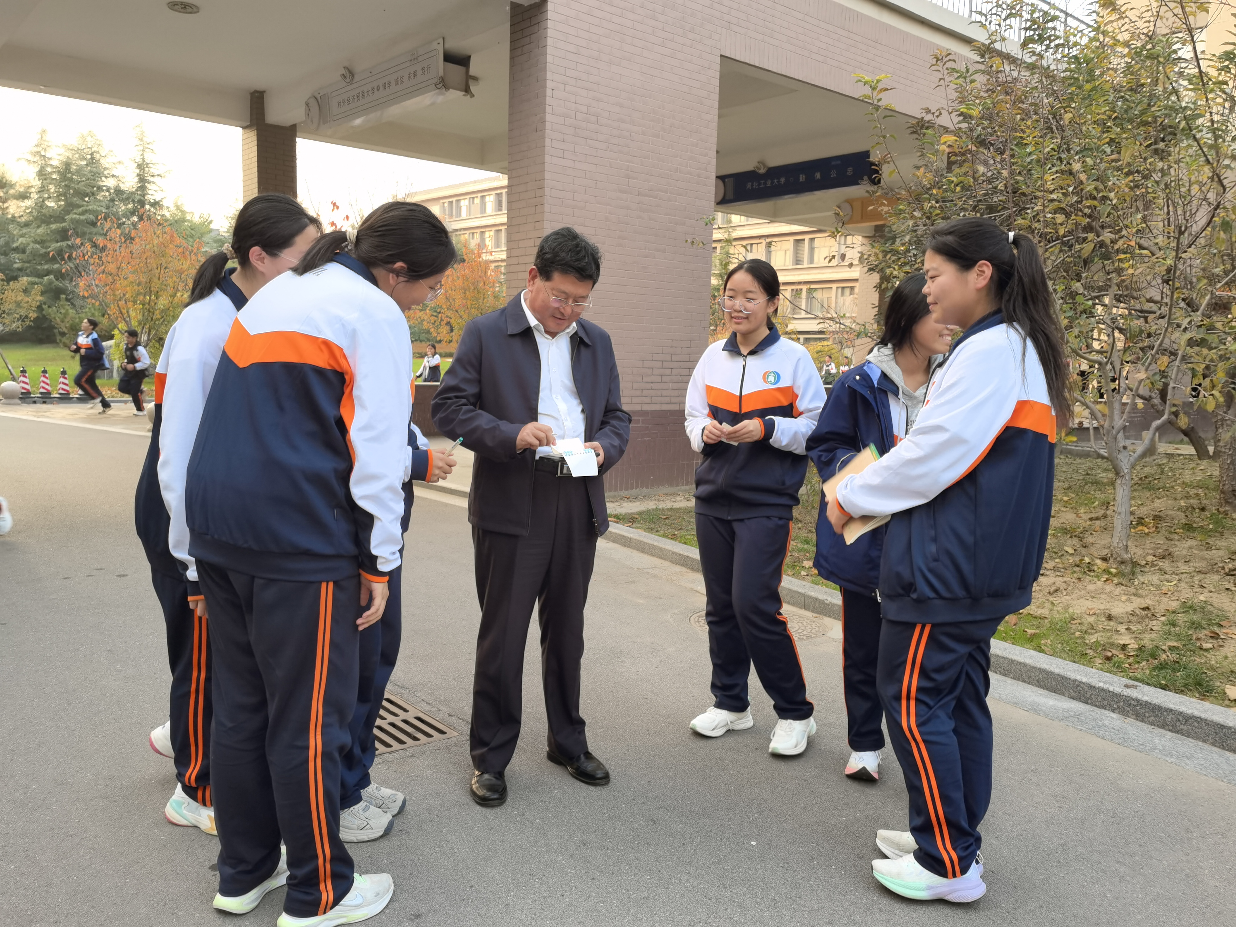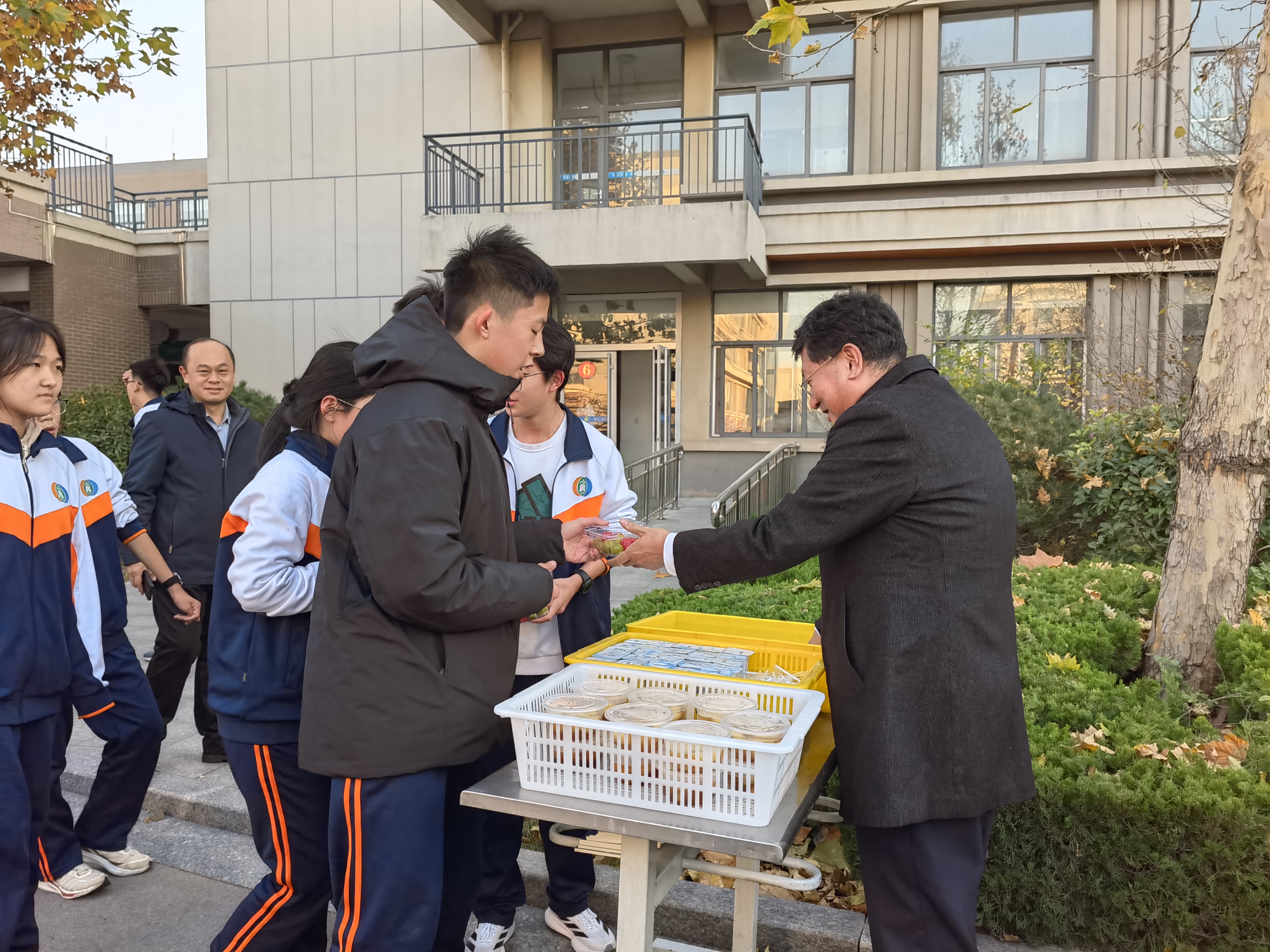 最受瞩目的当属自由跑前三名的颁奖环节。活动接近尾声,史本泉校长亲临现场,为脱颖而出的学子颁发奖品。“祝贺你!继续保持这份拼搏劲头!”校长的亲切鼓励与殷切期许,让获奖学生备受鼓舞,也让在场的每一位同学感受到运动的荣誉感与归属感。这份特殊的奖励,不仅是对速度的肯定,更是对同学们积极参与、奋勇争先精神的嘉奖。