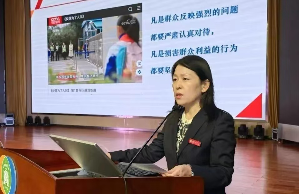 学校党委委员、纪委书记宋海英,传达纪律与廉洁的提醒