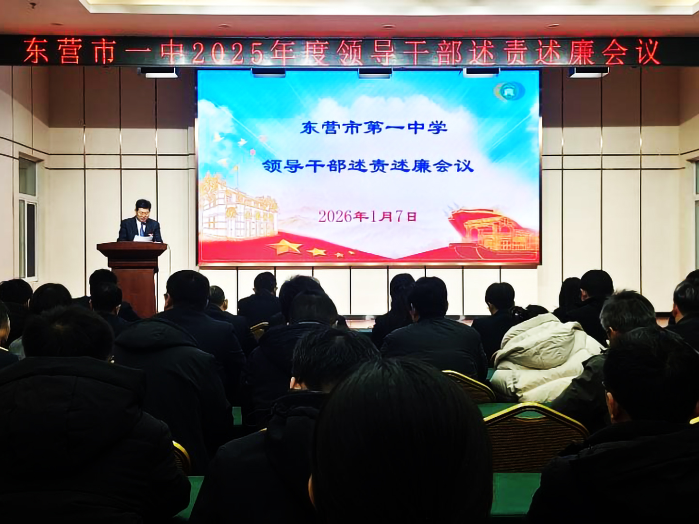 为进一步推进全面从严治党,压实党风廉政建设主体责任,1月7日,市一中召开2025年领导干部述责述廉工作会议。学校党委书记、校长史本泉主持会议并讲话,学校领导班子成员、中层干部和党员代表参会。
