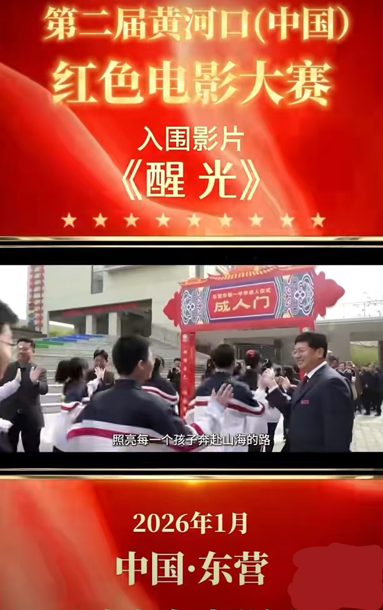 目前,《醒光》已成功入围第二届“黄河口(中国)红色电影大赛”纪录片单元,颁奖典礼将于2026年在东营隆重举行。届时,影片将全面展现一位教育工作者从青丝到白发的坚守,呈现东营教育人在黄河口这片热土上“种下星星,守望黎明”的初心。让我们共同期待这场光影盛宴,感受教育的力量与温度,见证红色文化与教育情怀的深度交融。
