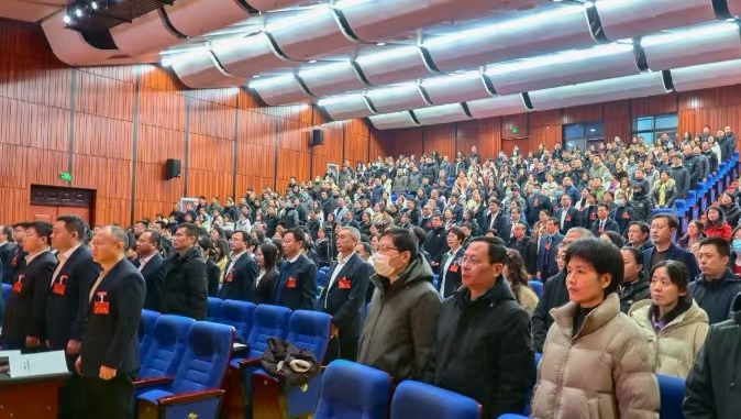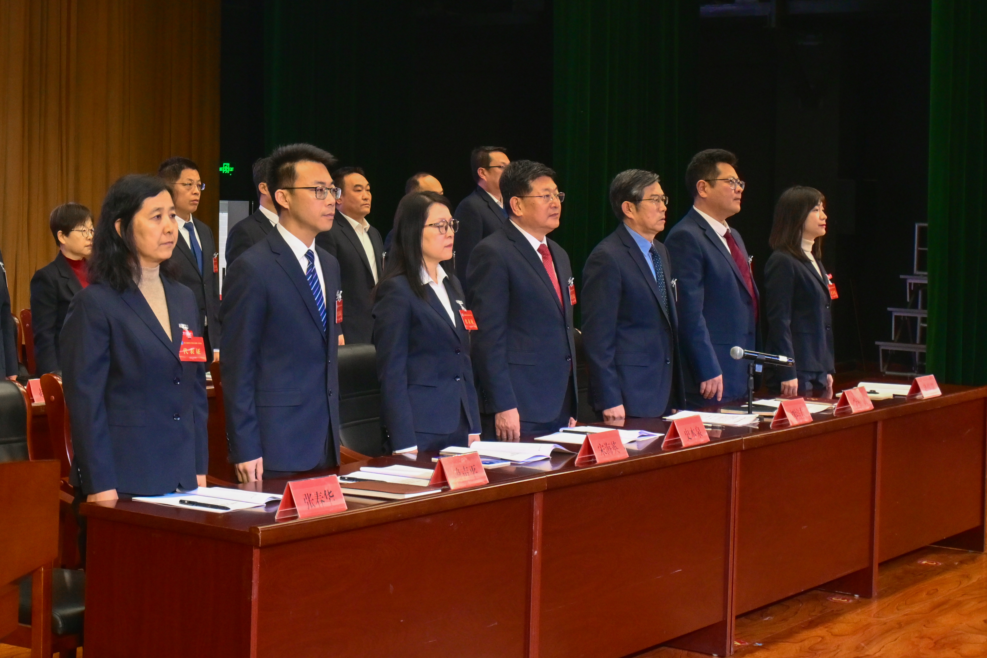 上午11时许,在圆满完成各项议程后,大会在雄壮的国歌中圆满落下帷幕。