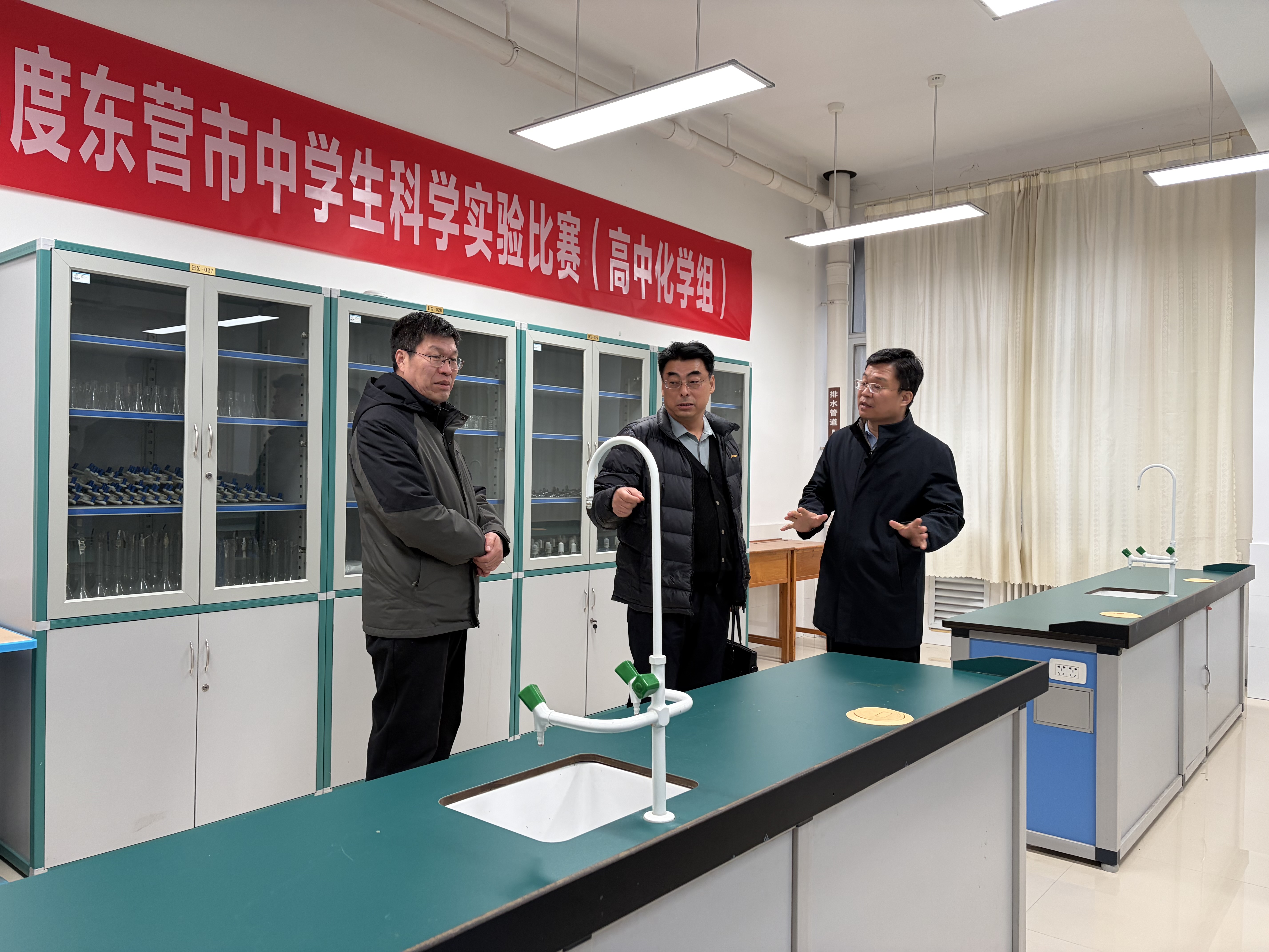3 月 5 日上午,山东省教育厅督导组一行在山东教育电视台党委书记、台长王上的带领下,到东营市第一中学开展春季开学校园安全督导调研工作。东营市教育局党组书记、局长董玉奎陪同检查,东营市一中党委书记、校长史本泉就学校春季开学及安全管理工作作了专题汇报。