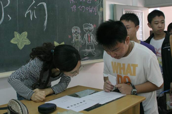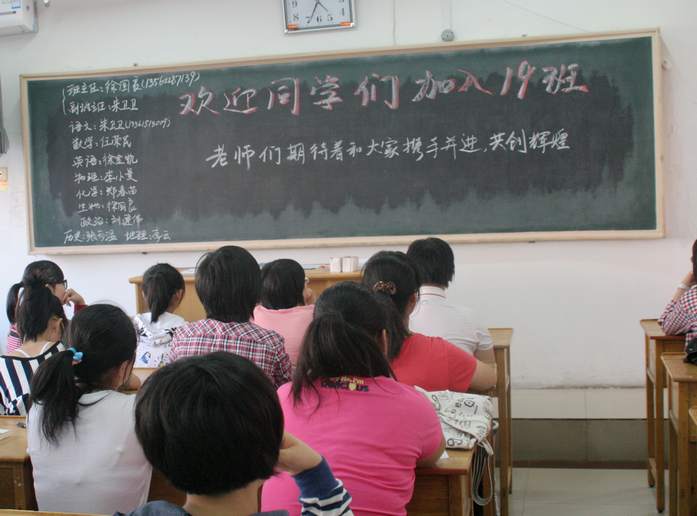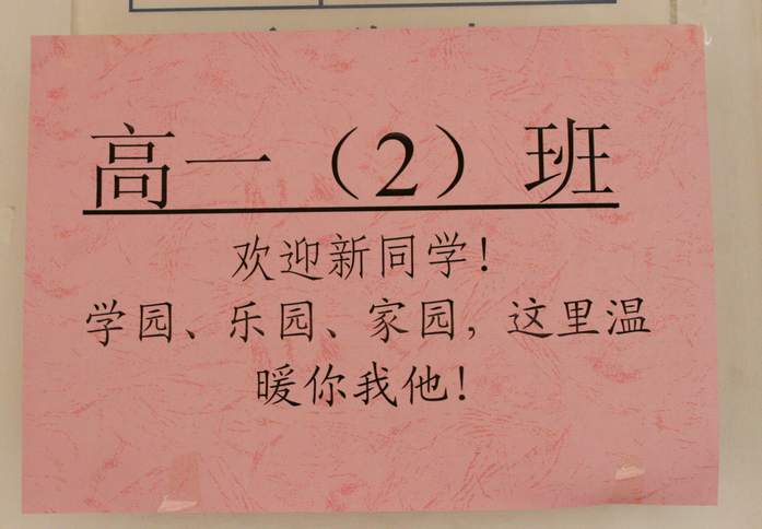 高二年级同学带领新同学进入教室高中入学第一课,要学会自立我升高中了,呵呵……温“新”的家欢迎你——高一、12班携手并进,共创辉煌——高一、19班第一次坐到高中教室里,满怀喜悦和激动高一二班——学园、乐园、家园耐心为新生解读报到流程