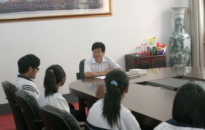 6月3日上午,学校校长史本泉在接待室同藏族学生亲切座谈。座谈中,史校长关切的询问四位藏族学生:在东营生活习惯吗?想家吗?学习能不能跟得上?同学们之间相处的好吗?……西藏学生高兴的告诉史校长:在这里生活的很好,学校的老师们和同学们对我们的帮助很大。