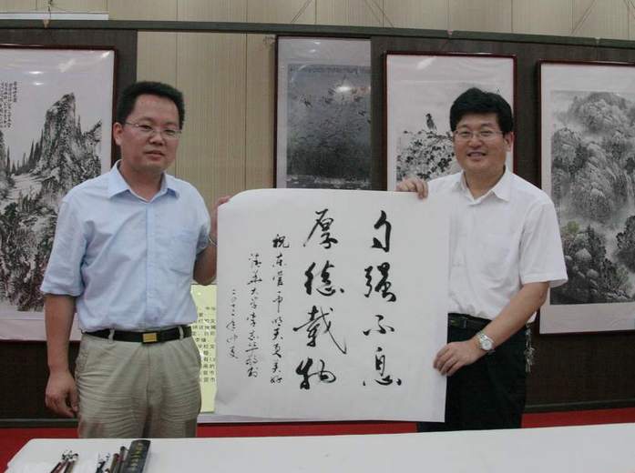 座谈会后,在学校史本泉校长的陪同下,来访客人参观了我校校园和校史展览馆。在校史展览馆,李主任欣然为我校题词“自强不息 厚德载物”,勉励我校广大学子要立志高远、发愤图强,增厚美德,容载万物,努力学习,力争考取像清华大学这样的一流名校。 (通讯员 丁子勇)