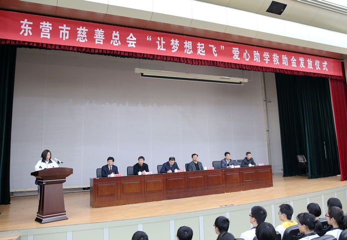 市一中党委书记、校长史本泉在讲话中代表受资助的学校和学生向东营市慈善总会、向长期以来关心支持慈善事业、教育事业的社会各界人士表示衷心感谢和崇高敬意。他说,爱心助学是一项功在当代,利在千秋的社会公益事业。东营市慈善总会举办的“让梦想飞”爱心助学活动,是一件有益于个人、有益于家庭、有益于社会的大好事。