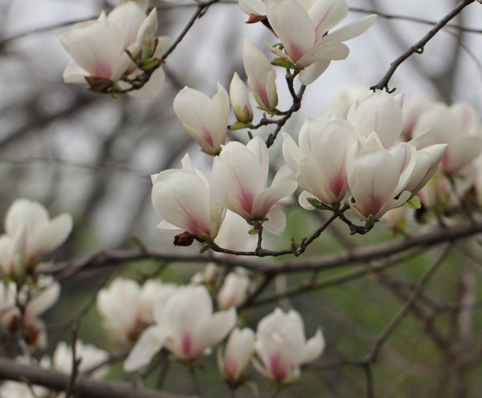 白玉兰花是简单而又纯粹的花儿,它有着玉一般的质地和高雅。它高高的绽放在枝头上,没有绿叶,只是一朵朵白的有些清透的花瓣,在春阳下是如此的轻盈而又美好。