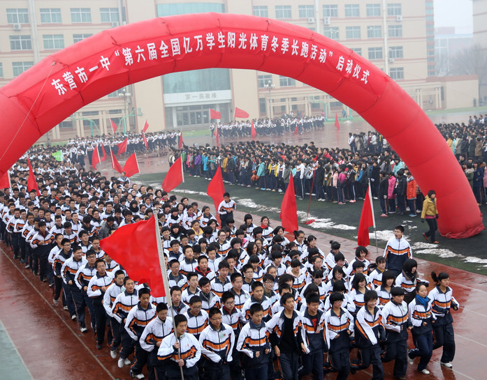 为积极响应由共青团中央、教育部、国家体育总局联合发出的全国亿万学生阳光体育冬季长跑活动的号召,丰富学生体育生活,增强学生体质,磨练学生意志,12月28日,市一中隆重举行“第六届全国亿万学生阳光体育冬季长跑活动”启动仪式。