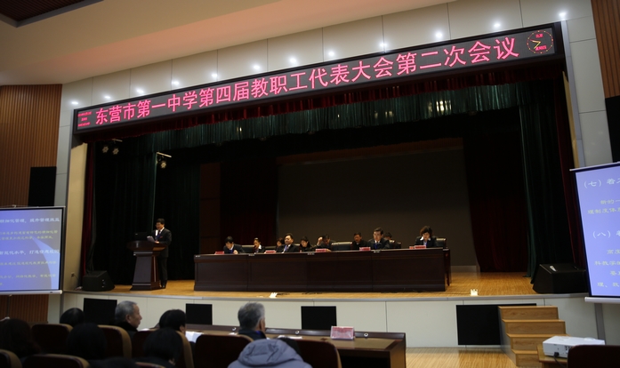 新春的鞭炮声还在耳边回响,新学期的征程已在我们面前展开。2014年2月13日上午,东营市一中第四届教职工代表大会第二次会议在学校礼堂隆重举行。全校教职工齐聚一堂,共商学校发展大计。学校党委书记、校长史本泉作了题为《实干兴校 追求卓越 凝心聚力 升级发展》的工作报告。(通讯员 丁子勇)