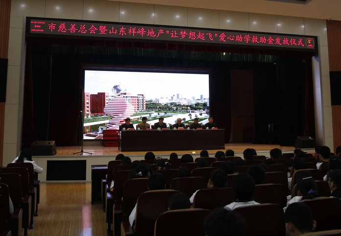 12月5日上午,市一中大礼堂庄严而热烈。东营市慈善总会暨山东祥峰地产“让梦想起飞”爱心助学救助金发放仪式隆重举行。市民政局局长王毅,市一中党委书记、校长史本泉,市二中校长张振峰,山东祥峰房地产有限责任公司董事长孙利出席发放仪式。仪式由市教育局党委副书记李从涛主持。