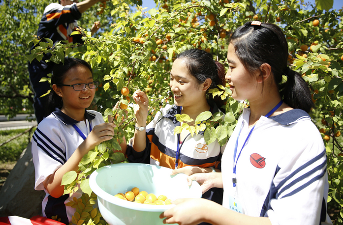 校园里的金杏熟了——又到了采摘收获的季节