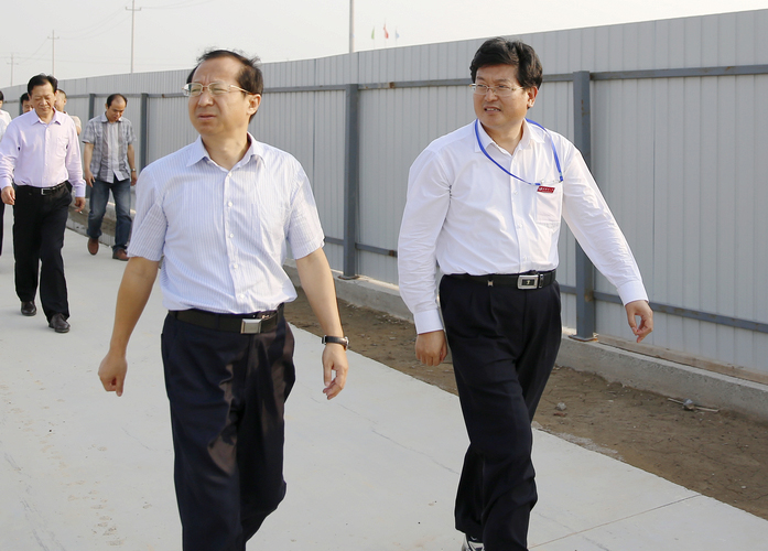 市一中新校建设总指挥、学校党委书记、校长史本泉就新校建设进展情况做了专题汇报。图为:王吉能副市长在史本泉校长的陪同下实地查看了新校建设工地。(通讯员丁子勇)