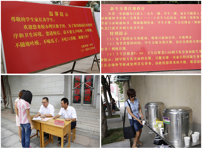 上午7时整,新生交费注册工作准时开始。各流程的工作人员早已各自就位等待迎接市一中的新成员。他们仔细核对,认真登记,细致高效地完成交费、身高测量和资料发放等工作,耐心具体地解答新生的疑问,各项工作有条不紊、衔接顺畅。而我校的学生志愿者更是表现出了一中人的热情和周到,他们热情地为新生和家长指路,耐心的回答新生们的提出的问题,他们用自己的行动为每一个前来报到的新生和家长提供着最温馨的服务。
