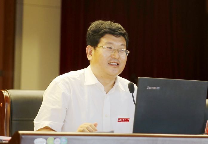 级高一新生及家长入校教育报告会。市一中党委书记、校长史本泉做专题报告。