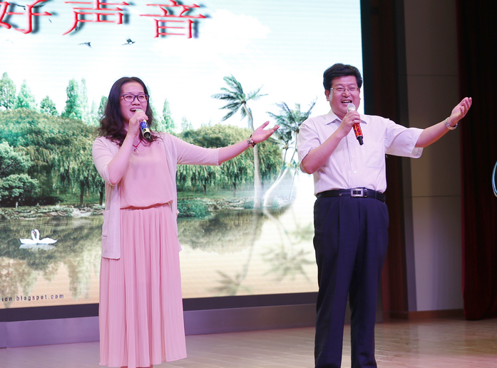 用音乐的旋律感动校园,用声音的美丽渲染青春。近日,东营市一中2014年校园文化艺术节正式拉开序幕。5月21日晚,“一中好声音”校园歌手总决赛于在学校大礼堂激情上演。学校党委书记、校长史本泉到场观看比赛,并在同学们的热情邀请下登台演唱。(通讯员 丁子勇)