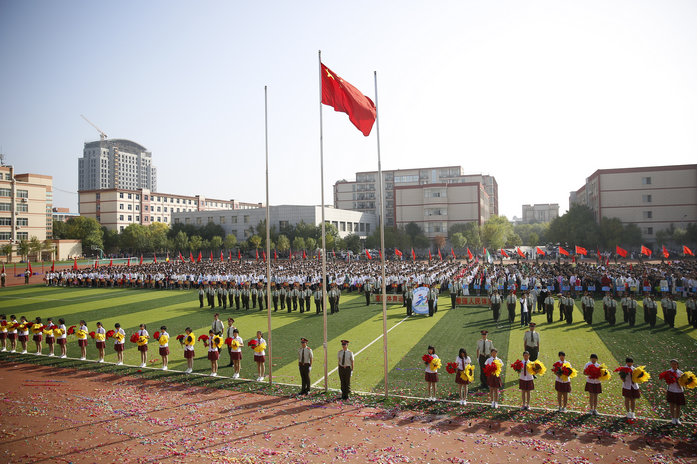 和煦秋风,运动激情涌校园;青春生命,顽强拼搏展英姿。9月29日上午8点,东营市一中的运动场人声鼎沸,彩旗招展,学校第二十六届秋季田径运动会隆重举行。东营市教育局党委副书记李从涛,市一中家长委员会委员、市政府办公室副主任唐新军,市政法委政治部主任王广兴应邀出席开幕式。学校党委书记、校长史本泉宣布“东营市第一中学第二十六届田径运动会开幕”。(通讯员 丁子勇)