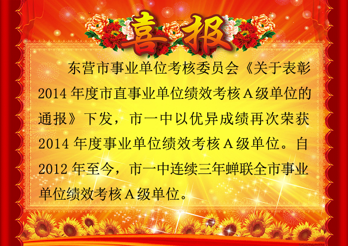 喜报:2014年度蝉联全市事业单位绩效考核A级单位