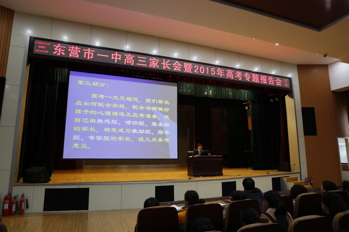 四月的一中校园,春意盎然,生机勃勃,一场春雨并未阻挡家校合作的脚步。4月2日-3日,市一中在大礼堂召开高三年级家长会暨2015年高考专题报告会。市一中党委书记、校长史本泉分三次为高三年级学生家长做了题为《师生同心,家校协作,让孩子在高考中长大成人》专题报告。(通讯员 丁子勇)