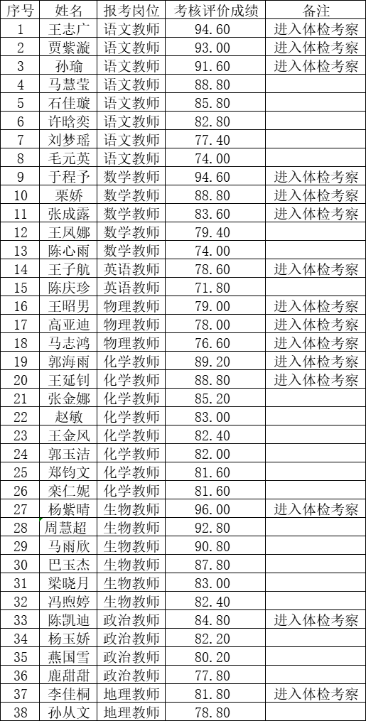 东营市第一中学2024年"千名英才“选聘考核评价成绩公布