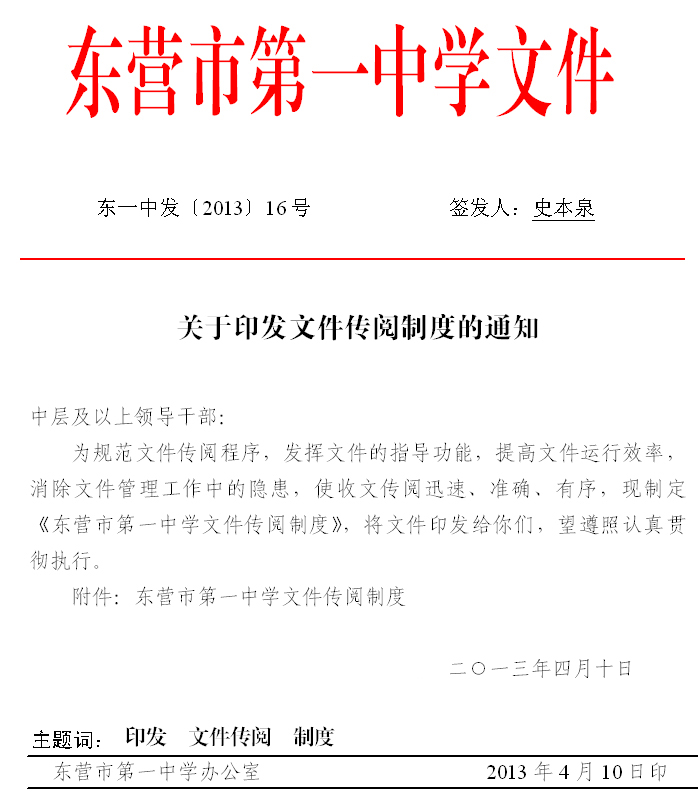 东营市第一中学文件传阅制度