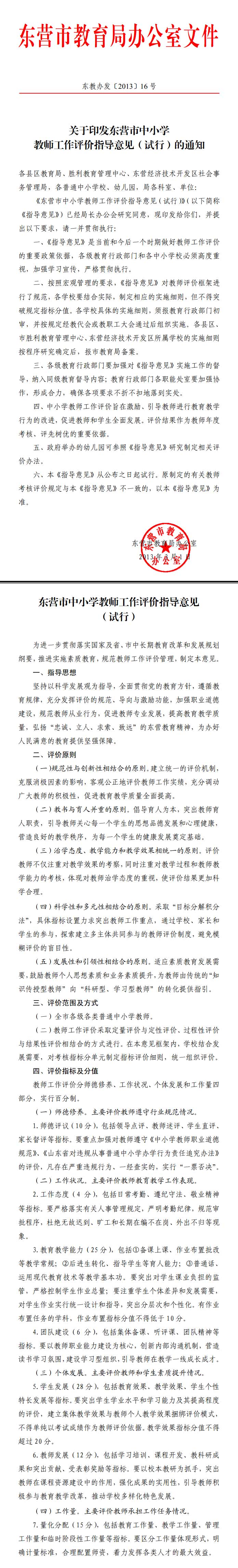 关于印发东营市中小学教师工作评价指导意见(试行)的通知
