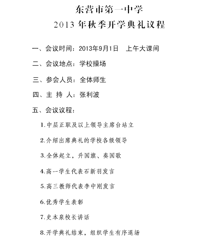2013年秋季开学典礼议程
