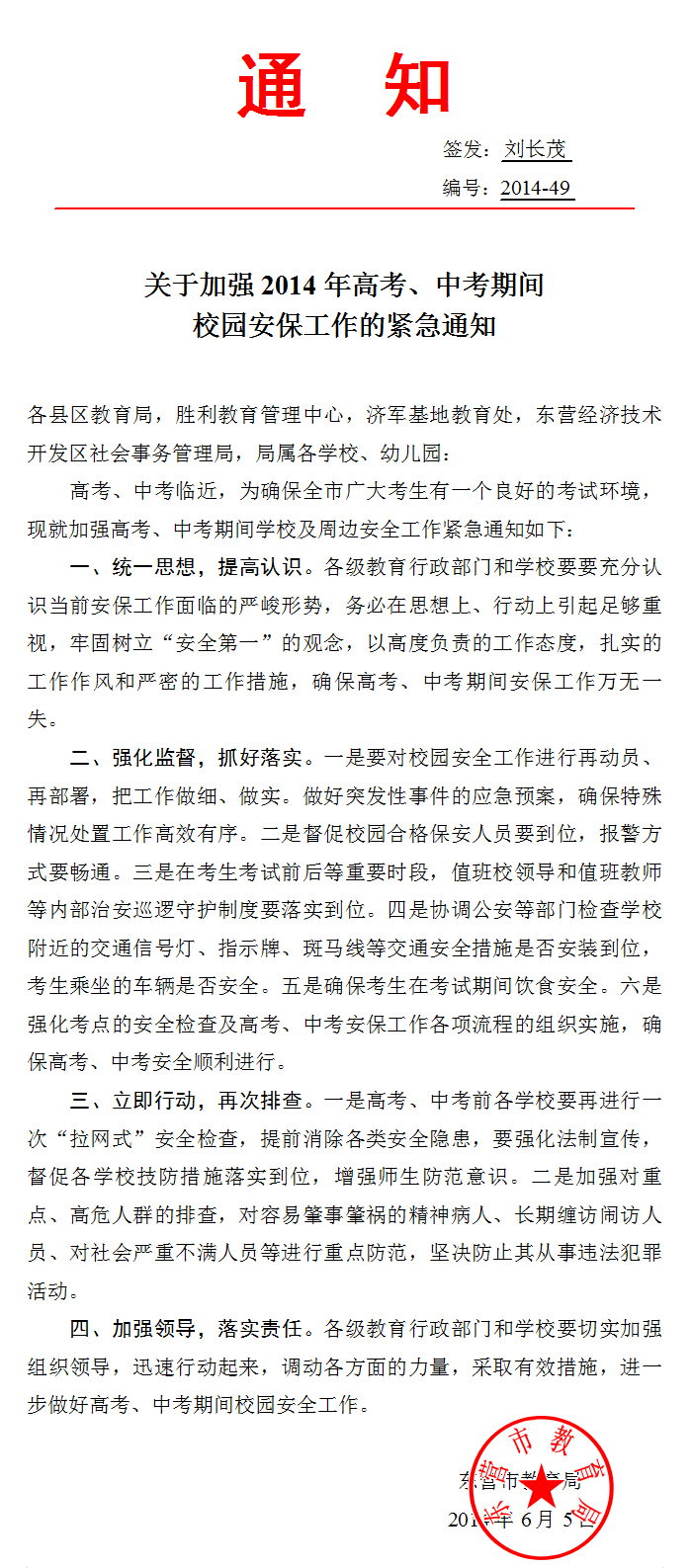 关于加强2014年高考、中考期间校园安保工作的紧急通知