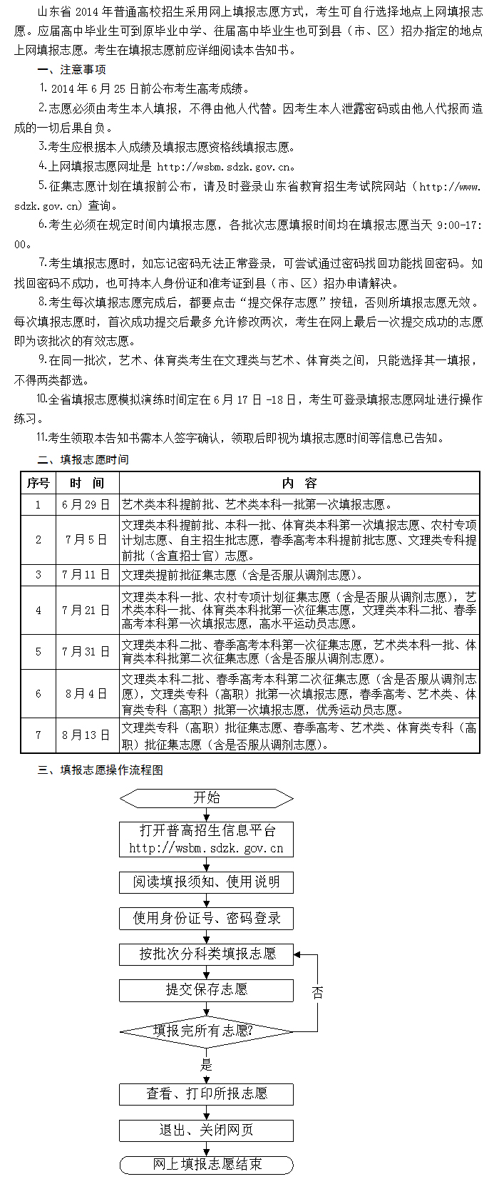 山东省2014年普通高校招生填报志愿告知书