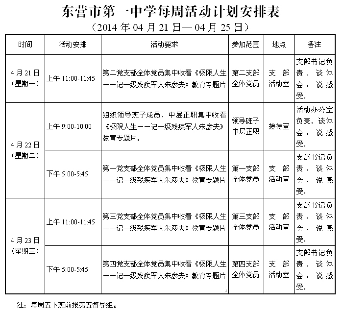 “集中学习活动”第五周具体工作安排