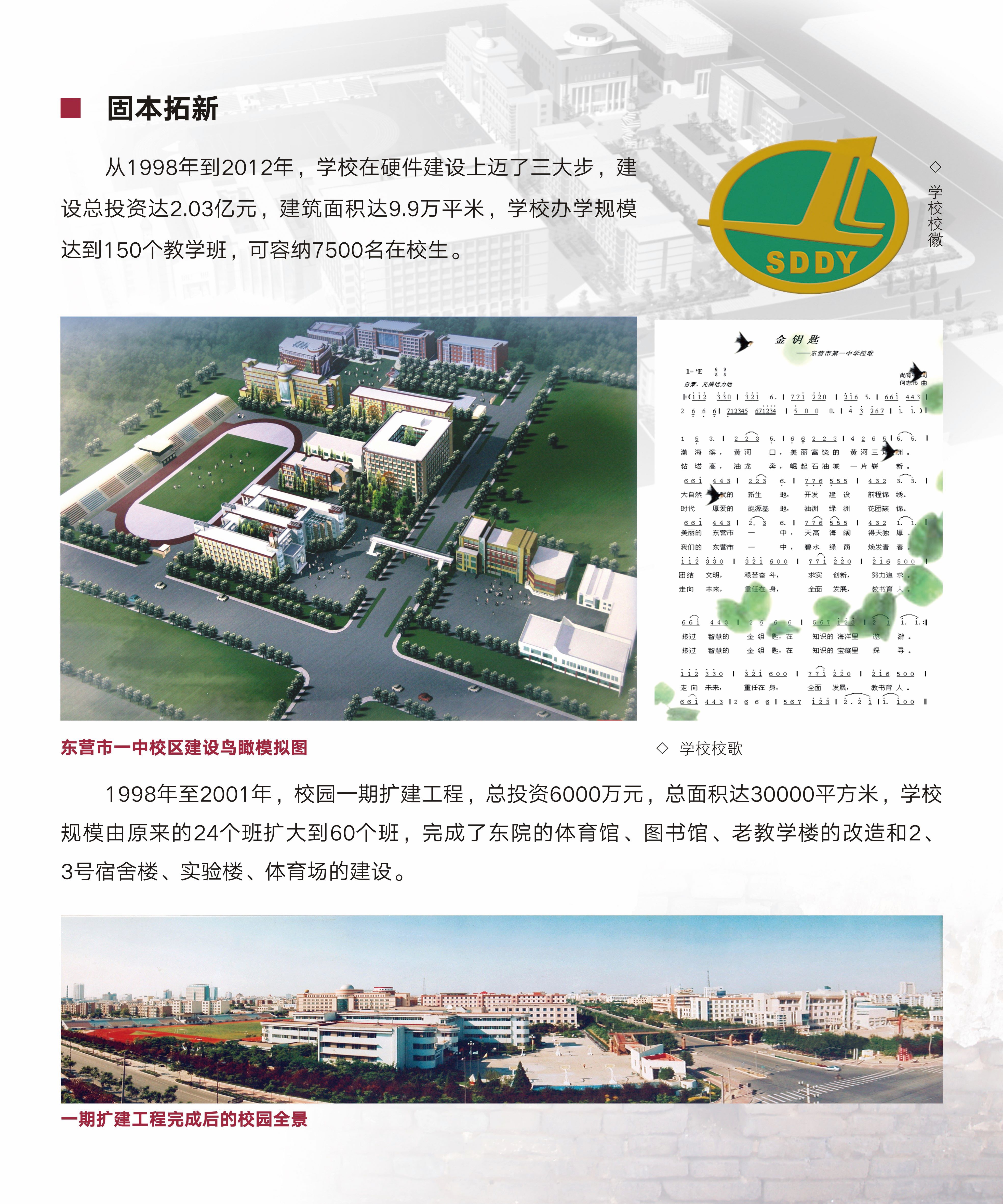 06年,市政府把我校南第二教学楼改扩建工程列入全市十件实事之一,改扩建面积18000平方米,实际投资2500万元;07年又新建集学生宿舍、餐厅为一体的综合楼,实际投资达28OO万元,两项目共投资5300万元;实现了学校建设的全部目标,学校规模达到150个教学班,可容纳7500到8000在校生。