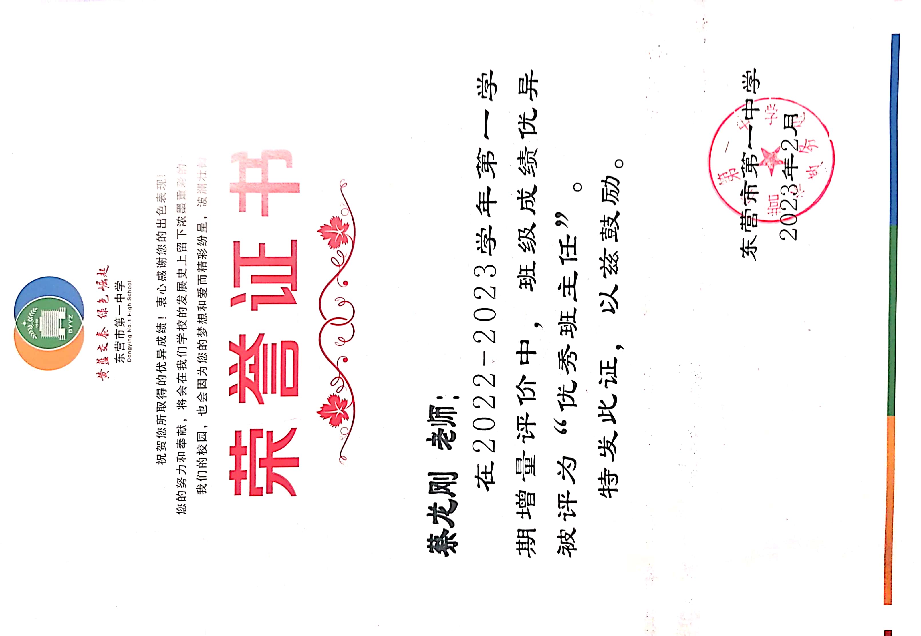 蔡龙刚老师获评2023年增量评价优秀班主任