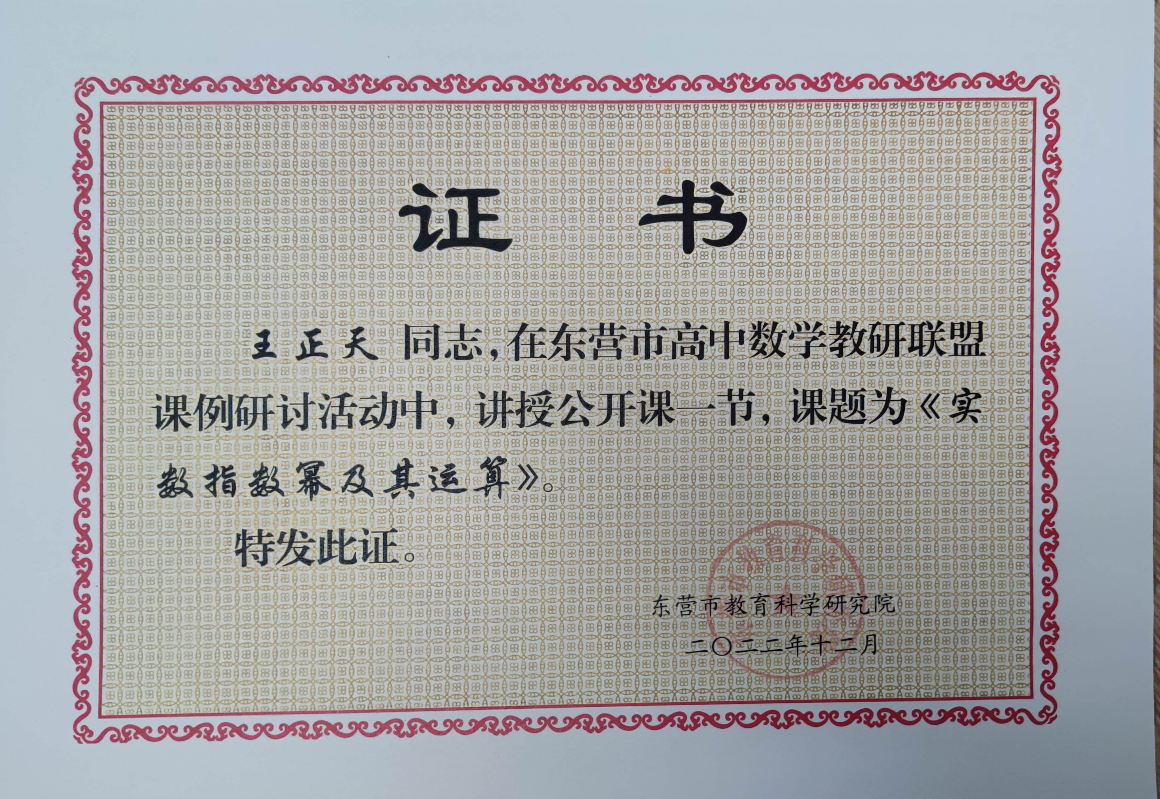 王正天在东营市高中数学教研联盟课例研讨活动中讲授公开课