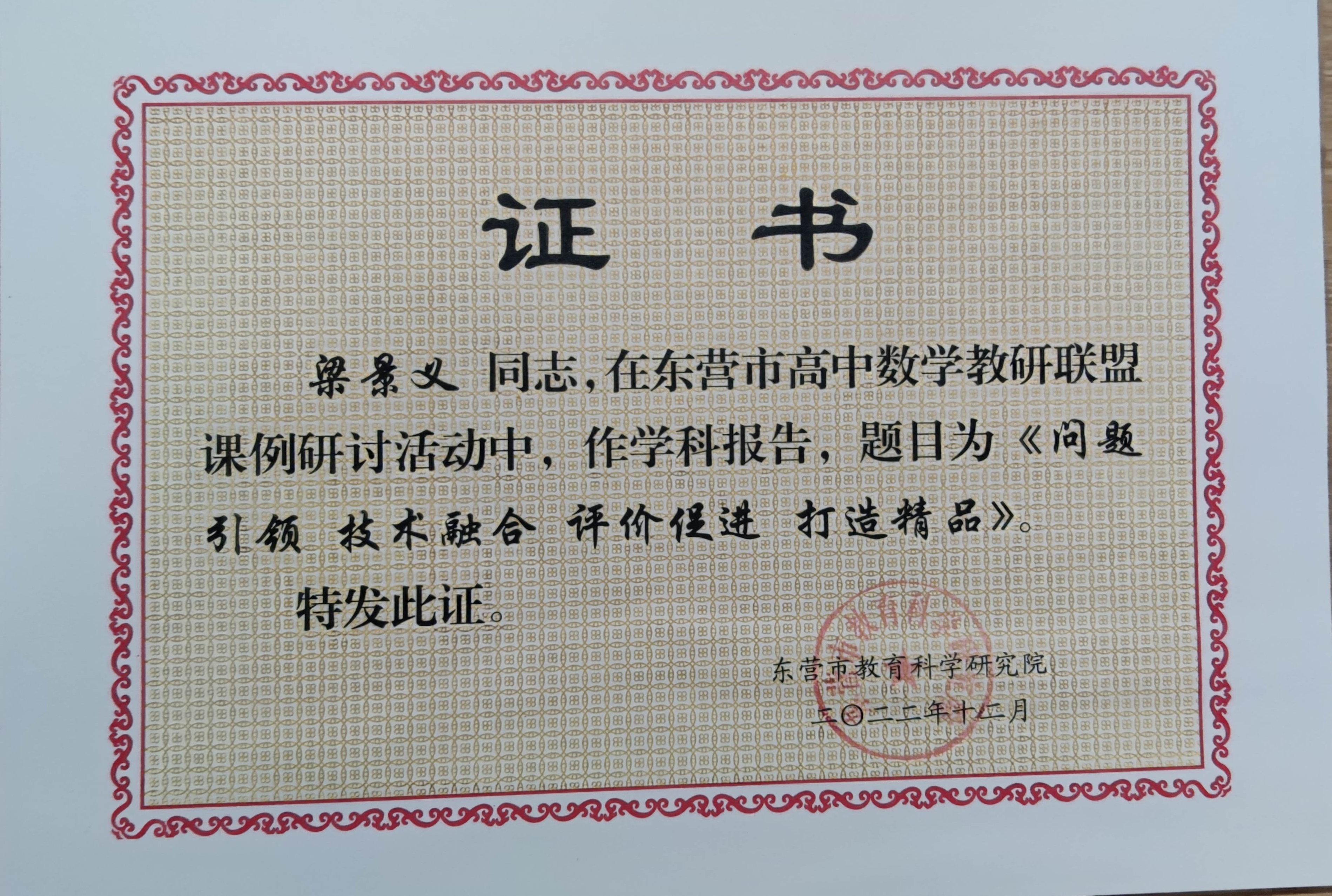 梁景义在东营市高中数学教研联盟课例研讨活动中作学科报告