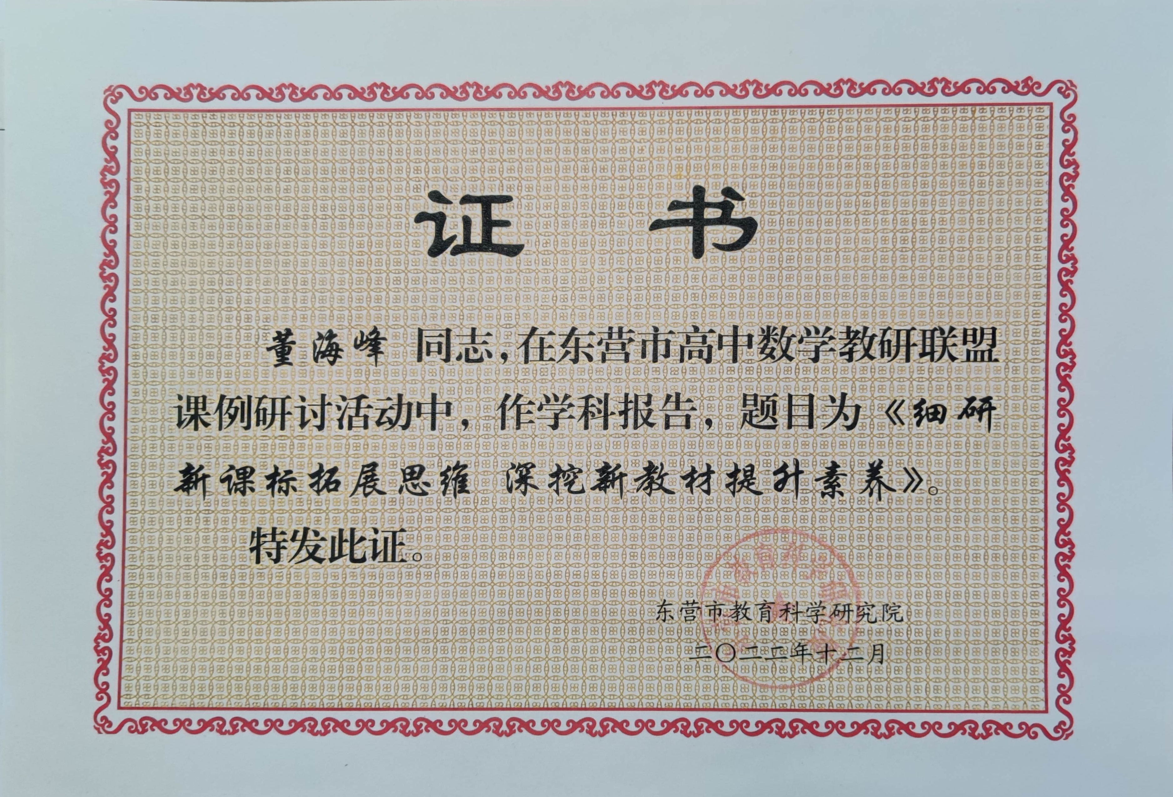董海峰在东营市高中数学教研联盟课例研讨活动中作学科报告