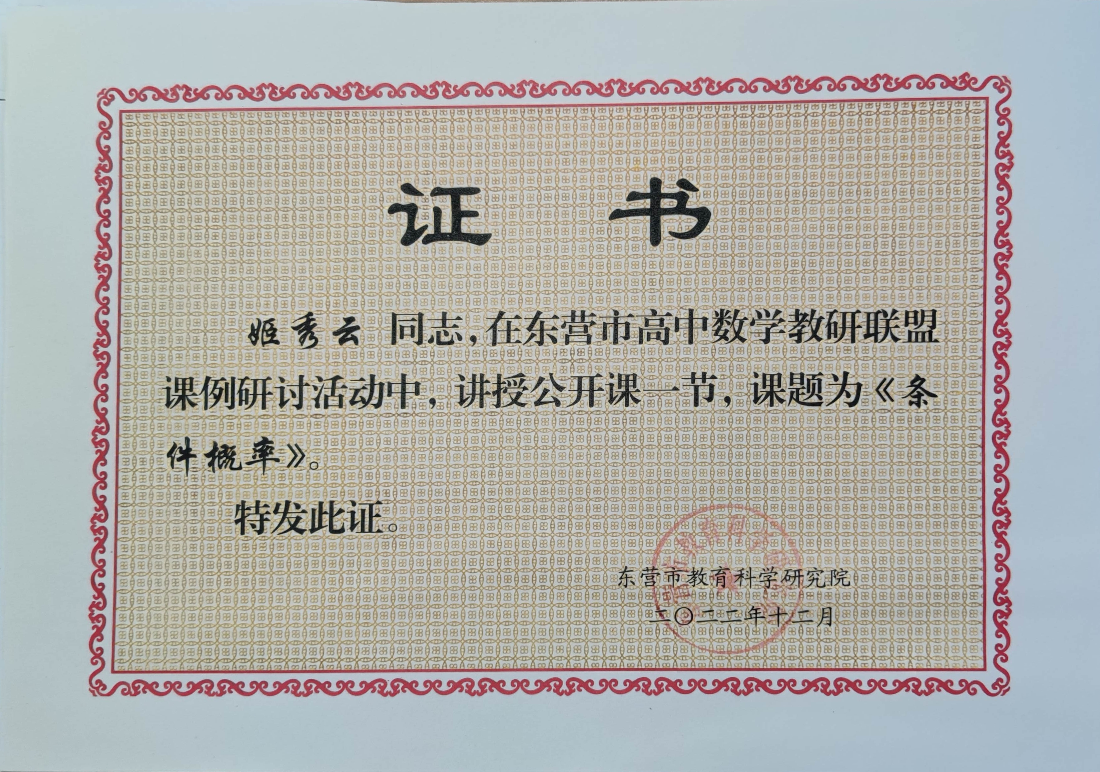 姬秀云在东营市高中数学教研联盟课例研讨活动中讲授公开课