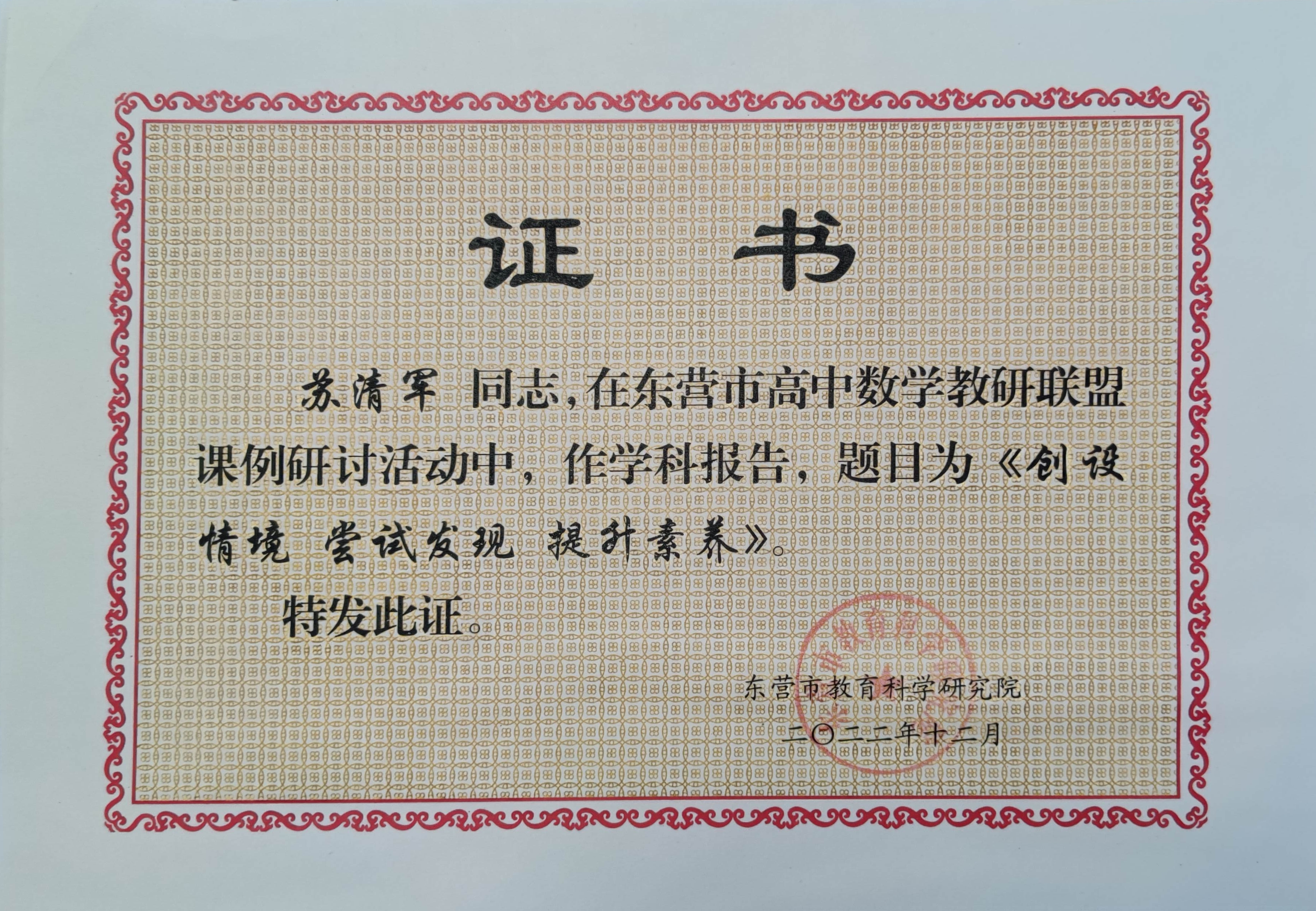 苏清军在东营市高中数学教研联盟课例研讨活动中作学科报告