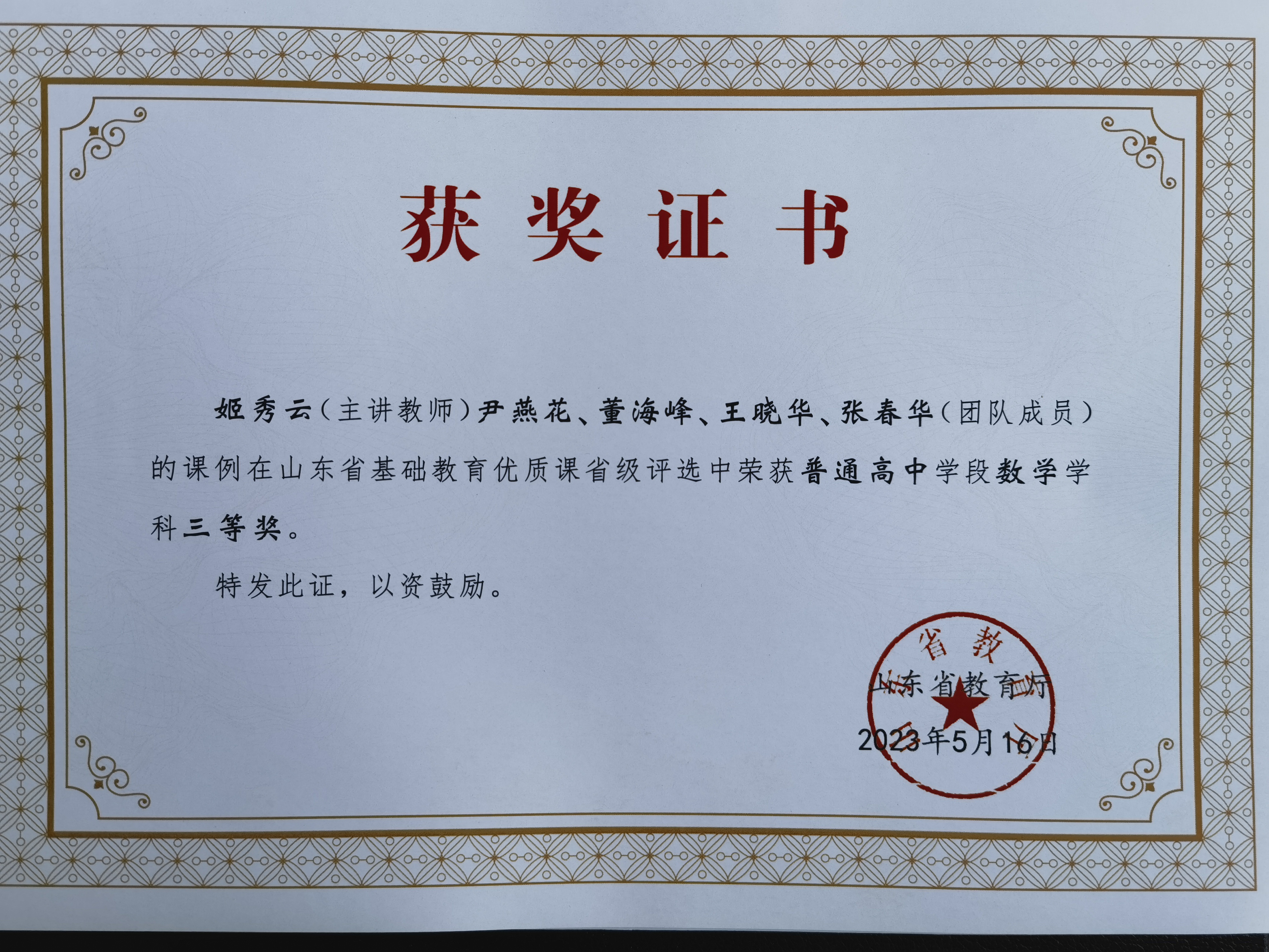 姬秀云在山东省基础教育优质课省级评选中荣获三等奖