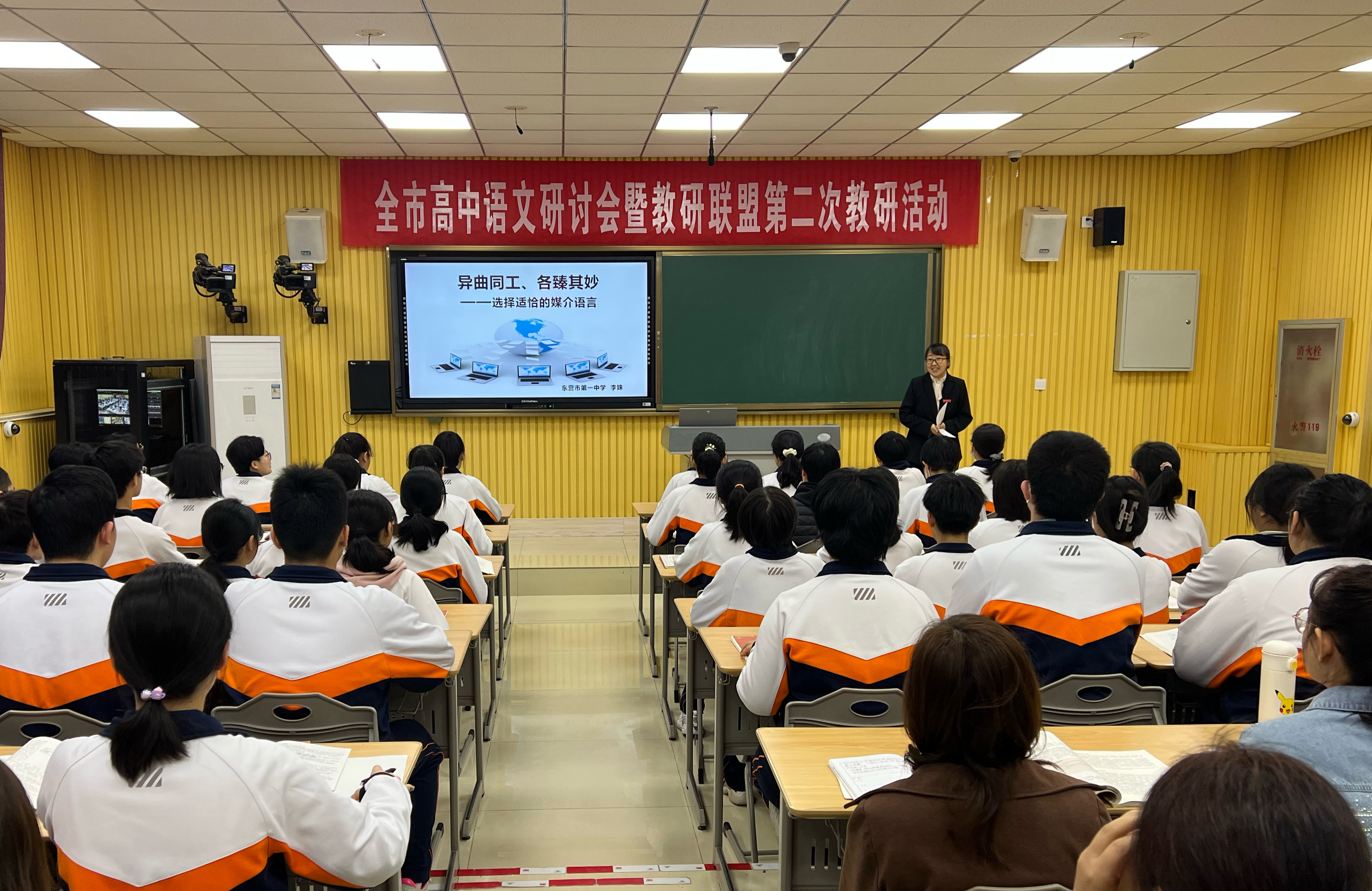 4月27日上午,全市高中语文教学研讨会暨教研联盟第二次教研活动在东营市第一中学举行。我校语文组李姝老师执教了《异曲同工,各臻其妙——选用适恰的媒介语言》的公开课。