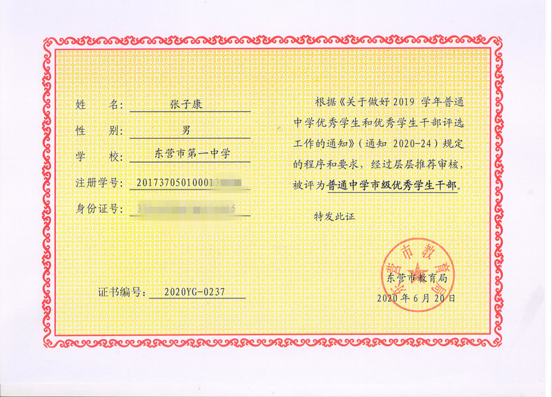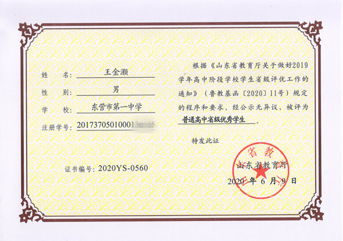 在山东省教育厅组织的高中阶段学校优秀学生、优秀学生干部评选中,我校王金灏等9名同学被评为省级优秀学生,赵志恒等4名同学被评为省级优秀学生干部,在东营市教育局组织的普通中学市级优秀学生、优秀学生干部评选中,我校姜泽凯等11名同学被评为市级优秀学生,张子康等5名同学被评为市级优秀学生干部!