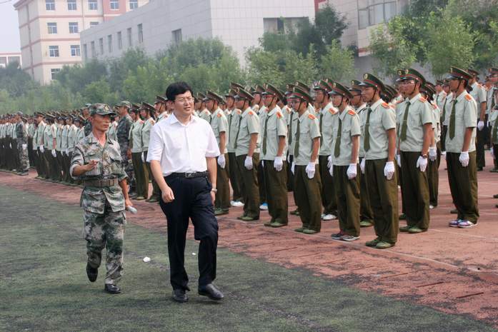 史本泉校长检阅军训部队