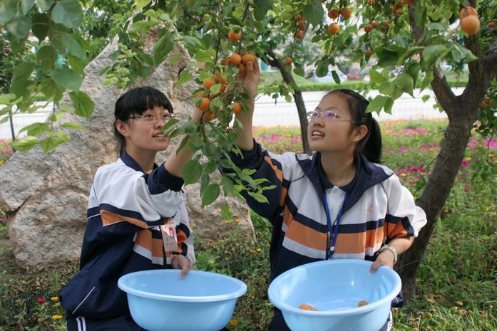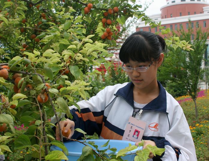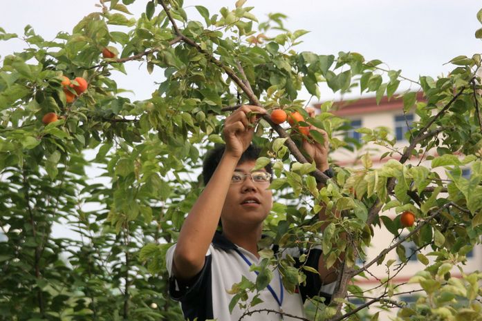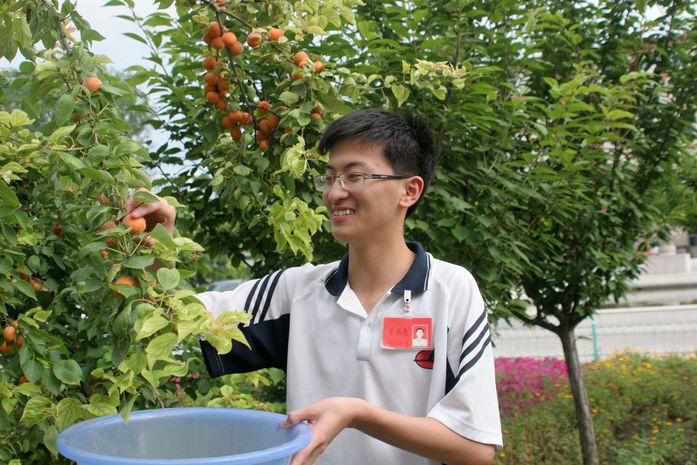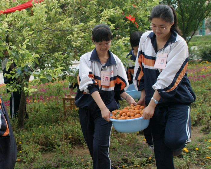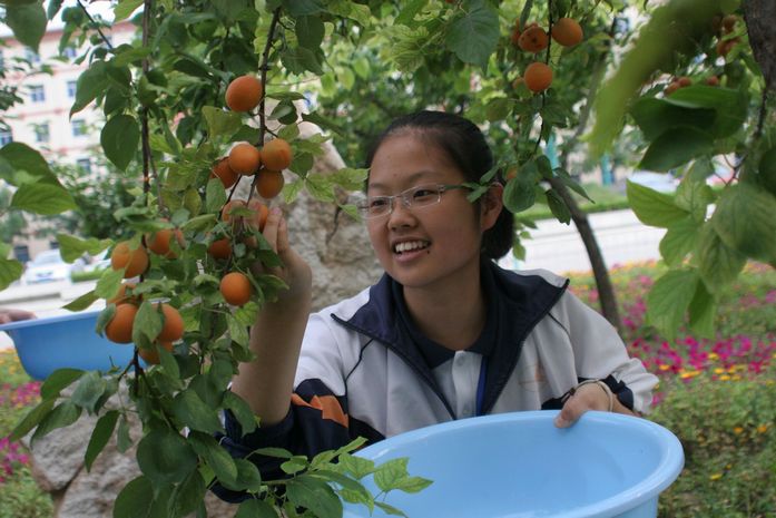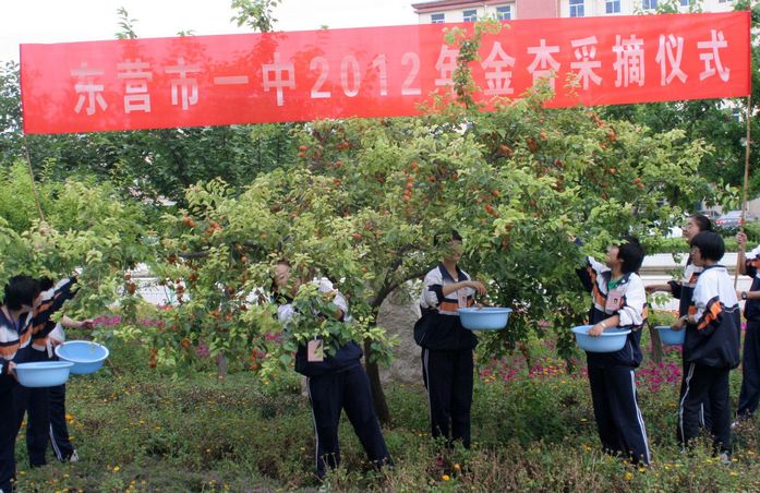六月的一中校园绿树成荫,生机盎然。杏树上黄灿灿的果实挂满枝头,每天同学们上下学都要经过树下,那果实伸手可得,十分的诱人。但是,所有的学生都没有这样做,他们知道,金杏就是检验每一个人文明程度的试金石,私自采摘事小,影响学校文明形象事大。同学们的自觉行为,感染、约束着过往的行人,无论是带着孩子的教师家属,还是食堂的工人;无论是学校巡逻的保安,还是打扫卫生的保洁员,他们都无一人采摘这“文明之果”。