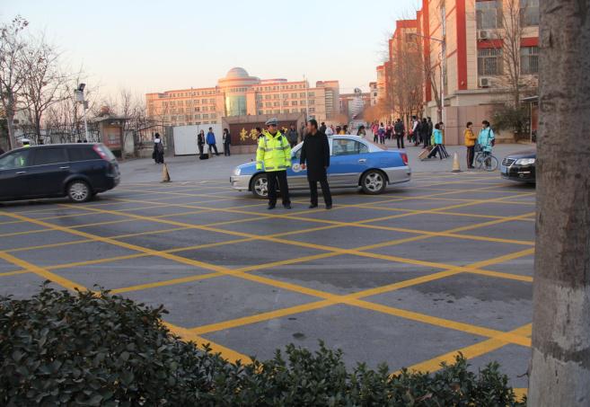 为了进一步巩固整治成果,学校和交警队沟通协商,在学校南大门口道路路面增设了“黄色网格线”。根据有关道路交通安全法律法规的规定,黄色网格线区域,严禁一切车辆长时间或临时停车;当黄色网格线前方有车辆停驶时,后车必须在黄色网格线外等候,直到确认黄色网格线前方有足够空间停驶本车时,方可驶过黄色网格线,否则,驾驶员将受到交通警察部门的处罚。