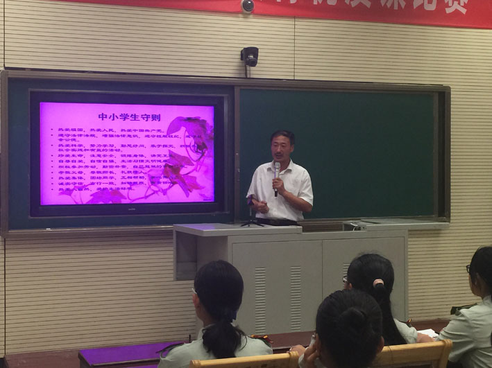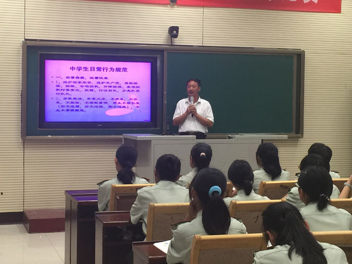 8月23日、25日两个晚上,我校在录播室采取现场直播的方式举行了2015级新生军训系列讲座——学校规章制度学习,学管处主任李新城主讲。