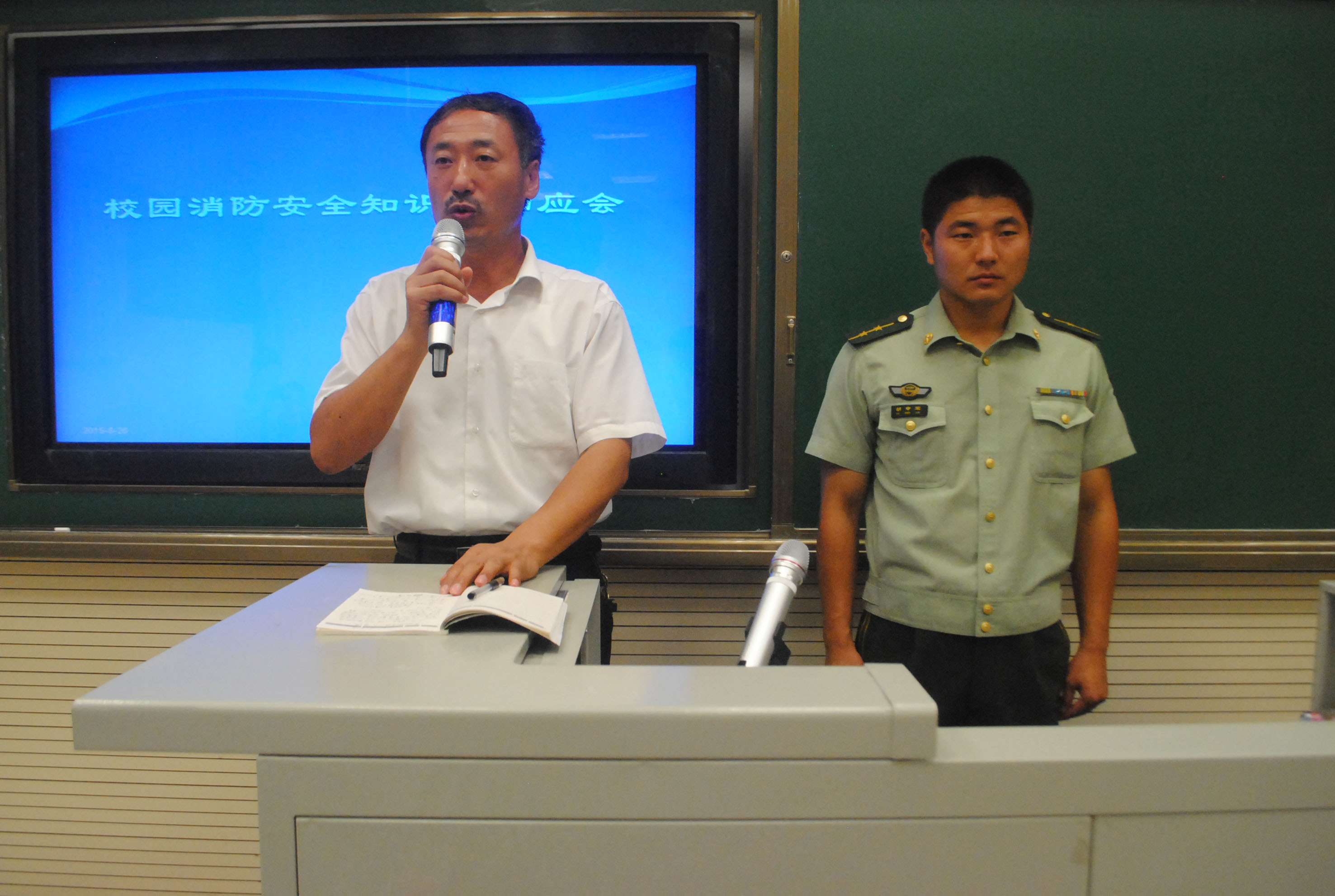 为提高2015级全体师生的消防安全意识,掌握消防基本知识,我校于